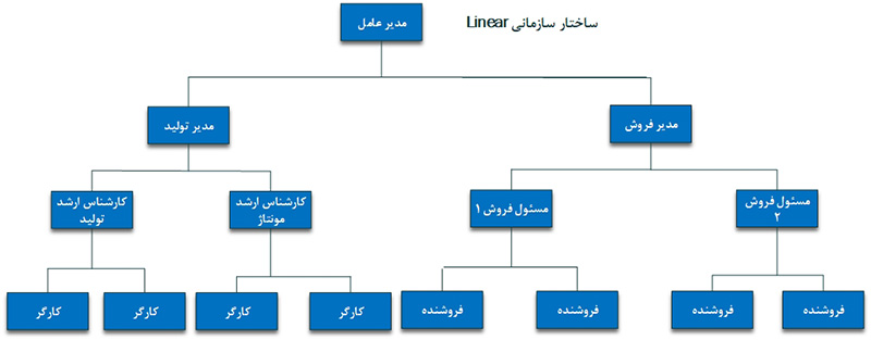 ساختار خطی بیشتر در شرکتهای کوچک وجود دارد این ساختار میتواند بهصورت خطی مطلق یا خطی دپارتمانی تعریف شود ساختار خطی بخشی، که با عنوان ساختار وظیفهای (functional structure) معرفی میشود .