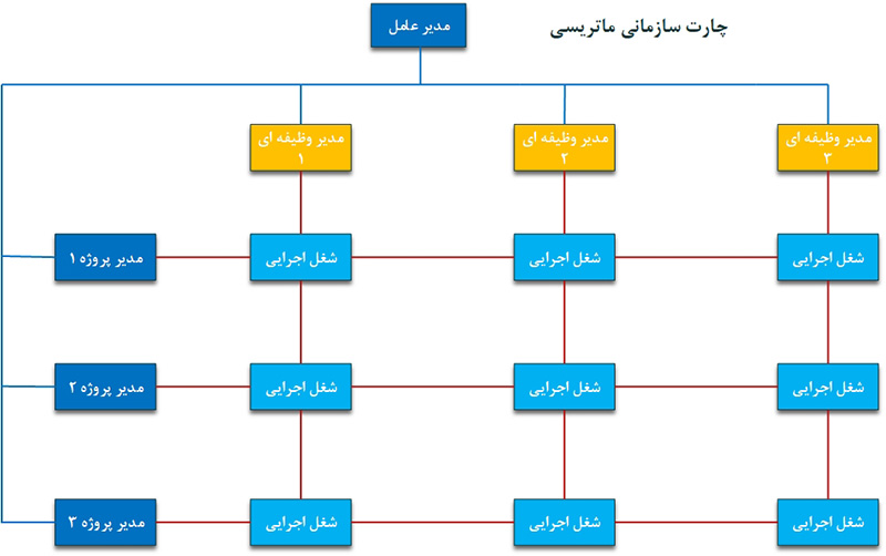 این نوع نمودار ترکیبی از نمودار وظیفهای و پروژهای شبیه یک جدول است که در آن افراد به دو یا چند مافوق گزارش میدهند. یکی مدیر پروژه/محصول و یکی مدیر وظیفهای. در طراحی ماتریس فعالیتهای روی محور عمودی برحسب وظیفه گروهبندی میشوند و بر روی این الگوی عمودی یک الگوی افقی مبتنی بر تفکیک سازی برحسب پروژه یا محصول قرار میگیرد و افراد برای انجام کارهای مشابه میتوانند به هم ملحق شوند. پویایی و جریان وسیع اطلاعات از ویژگیهای مثبت و بینظمی و پیچیدگی از ویژگیهای منفی این ساختار است.